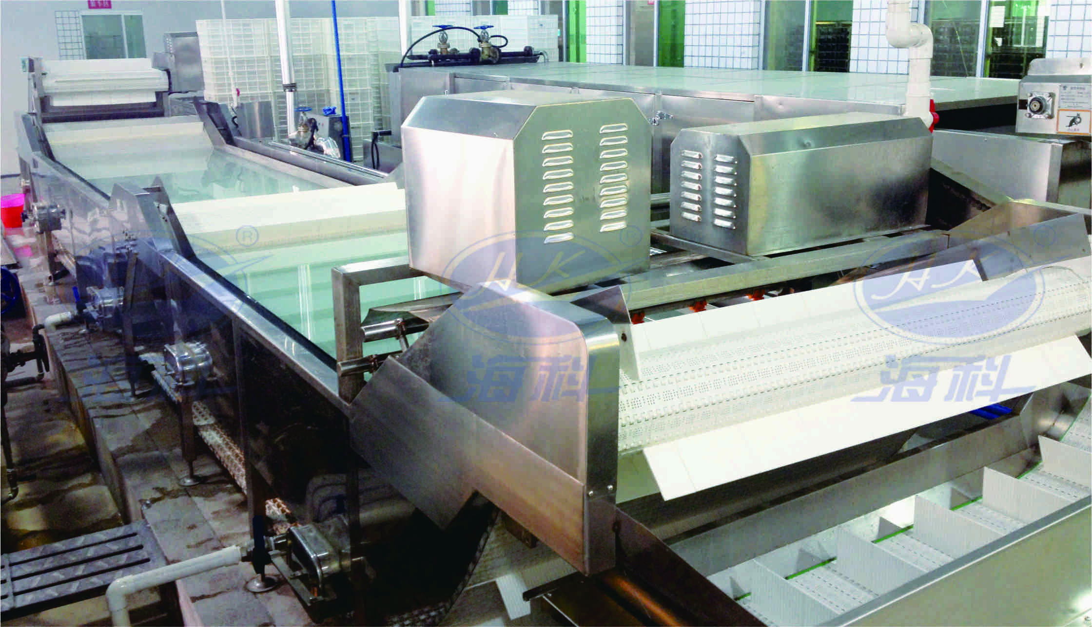 本設(shè)備適用青菜、雪菜、蒿菜等葉類鹽漬蔬菜的清洗。原料通過(guò)鼓泡、沖浪、高壓噴淋。經(jīng)過(guò)多級(jí)清洗,重質(zhì)雜物沉入箱底,輕質(zhì)雜物過(guò)濾后提升排放,使原料得到徹底的清洗??舍槍?duì)不同的物料和清洗要求多級(jí)組合配套。本設(shè)備采用進(jìn)口優(yōu)質(zhì)全不銹鋼制造,自動(dòng)化程序高,操作方便,生產(chǎn)能力